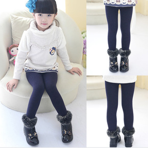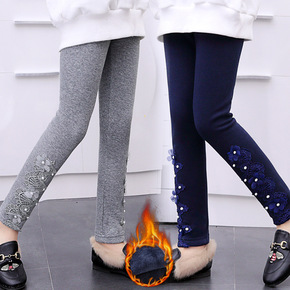 女童加绒裤子秋冬装外穿新款洋气韩版儿童中大童加厚牛...