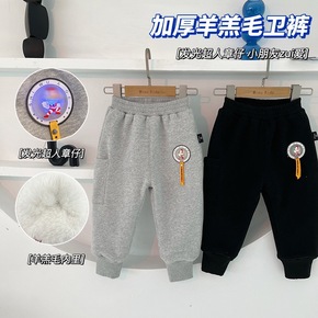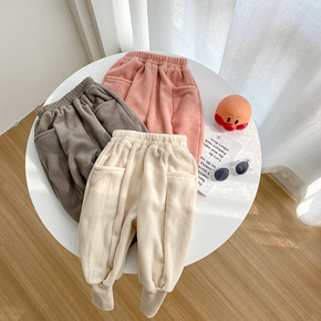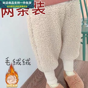 婴儿裤子秋冬男女童外穿加厚宽松宝宝加绒长裤羊羔毛绒...