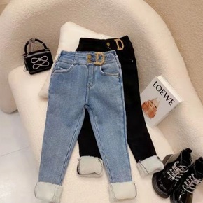 女童一体绒牛仔裤春秋2022新款韩版儿童宝宝加厚绒...
