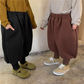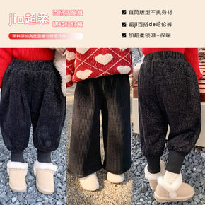毛开心秋冬新款2021儿童加绒阔腿裤女宝宝加厚宽松...