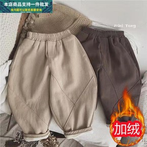 韩版儿童加绒哈伦裤秋冬款男女童装加厚保暖休闲裤宝宝...
