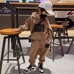男童网红套装2022新款宝宝秋冬加绒字母印花卫衣两...