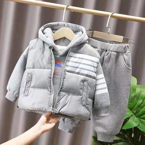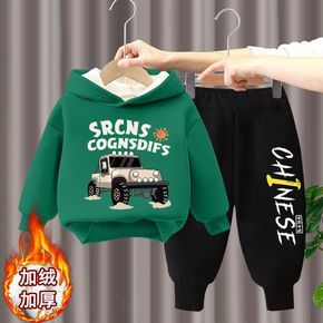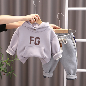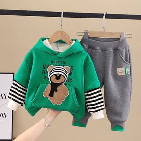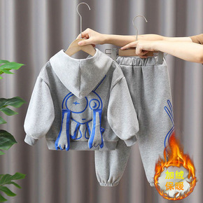 男童秋冬装套装2022新款宝宝冬季加绒连帽卫衣两件...