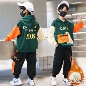 男童秋装两件套秋冬款2022新款中大童加绒卫衣套装...