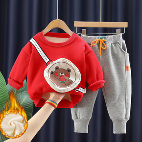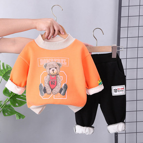 跨境童装秋冬季新款男童婴幼儿宝宝童套装卫衣加绒长袖...