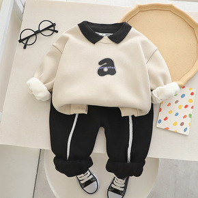 男童运动两件套 冬款加绒数字卫衣套装...