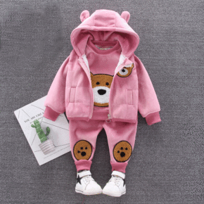 儿童冬季加绒加厚套装新款洋气中小童宝宝长袖卡通卫衣...
