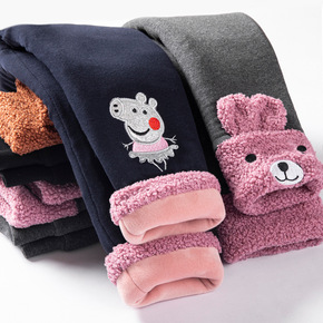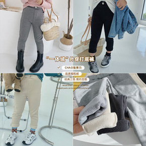 聪小妹2020秋冬儿童一体绒打底裤外穿女童加绒裤子...