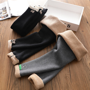 秋冬童装儿童一体绒加厚加绒保暖裤中大童打底棉裤男童...