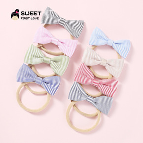 欧美外贸手工细条纹布艺包腰蝴蝶结宝宝头饰柔软弹力尼...