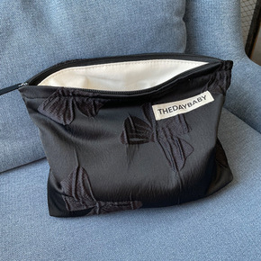 便携纯黑高贵暗纹蝴蝶结公主化妆包高冷精致旅行大容量...