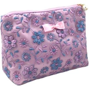 仙女蕾丝紫色随身化妆包气质公主风便携大容量收纳袋...