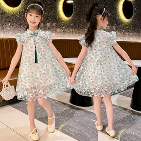 女孩子夏季洋气休闲裙子童装女童韩版网纱公主裙儿童火...