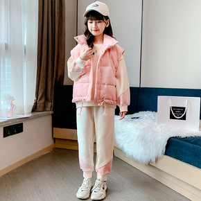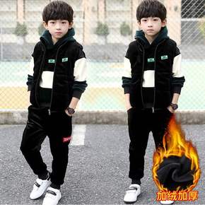 网红童装三件套冬时尚中大童卫衣套装洋气加绒加厚运动...