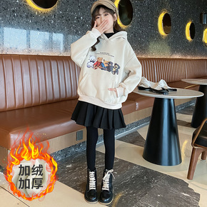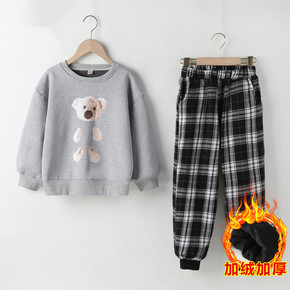 女童冬款洋气套装2022 韩板加绒连帽卡通小熊休闲...
