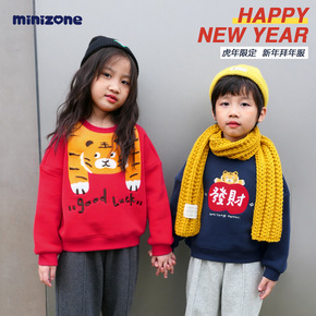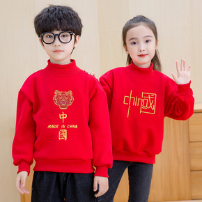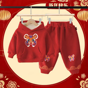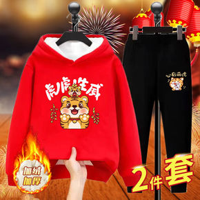 新年衣服套装儿童冬季中国风男女童加绒卫衣过年喜庆拜...