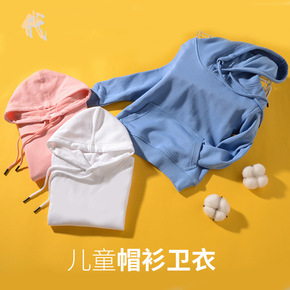 儿童连帽卫衣定制纯棉毛圈套头纯色长袖外套小学生班服...