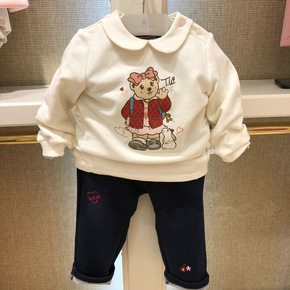 现货加绒款女童薄绒卫衣裙tw小熊时尚日系2021秋...