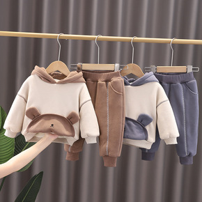 2021冬季新款男童女童连帽卫衣套装宝宝卡通保暖加...