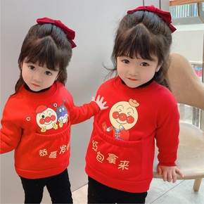 女童男童兔年新款拜年服红色加绒加厚卫衣宝宝喜庆新年...