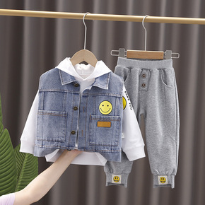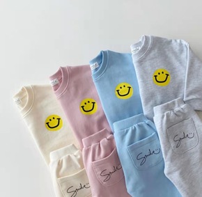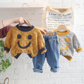 韩版童装春秋笑脸卫衣男女童宝宝休闲字母套装潮...