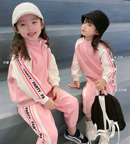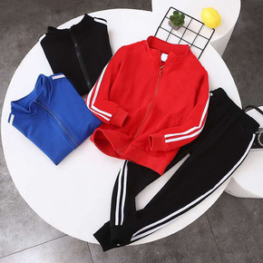秋款童装男女童字母休闲风两件套裤套装红色拉链衫长袖...