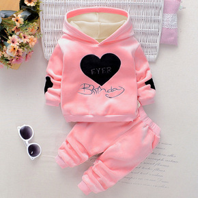 秋冬新款女宝宝爱心字母双面绒加绒加厚连帽卫衣女童保...