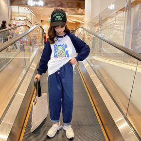 2021新款女童秋冬连帽卫衣套装 一件代货欧美in...