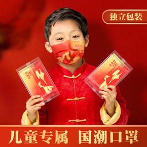 2022红色印花一次性口罩三层防护国潮时尚我爱你中...