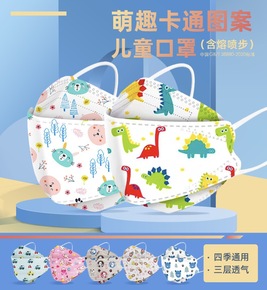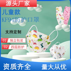 厂家批发独立包装儿童KF94口罩3D立体4层防护卡...