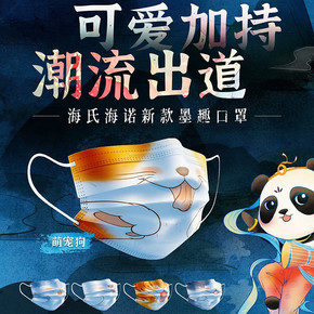 海氏海诺墨趣口罩三层防护一次性医用口罩彩色图儿童成...