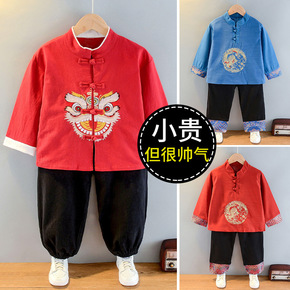 儿童汉服男童春秋季套装宝宝少爷服中国风男孩古装民国...