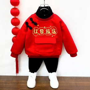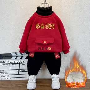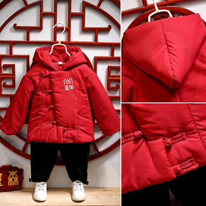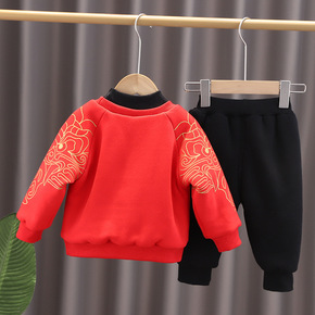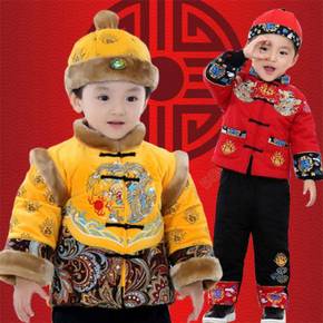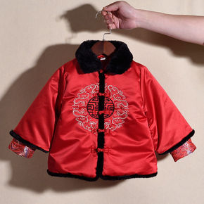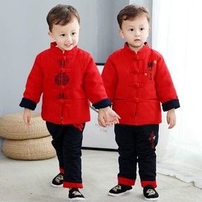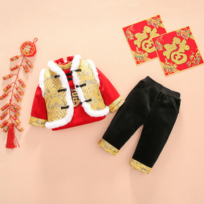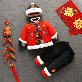 男童唐装冬女宝宝加厚套装小孩周岁抓周礼服婴儿喜庆红...