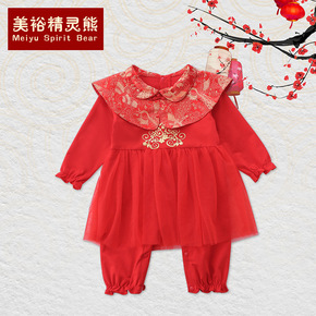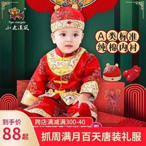 宝宝一周岁抓周唐装儿童婴儿百天百岁红色喜庆礼服男童...