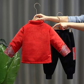 儿童汉服中国风拜年服冬季新款加厚唐装套装棉服男童女...