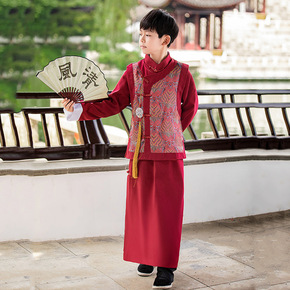 汉服男童唐装秋装少爷公子装中国风国学服马褂儿童古装...