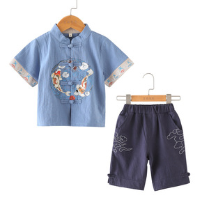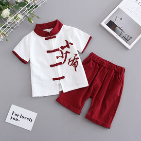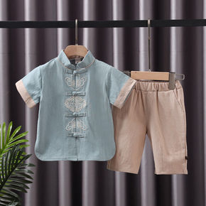 童装男童短袖复古棉麻汉服儿童夏季民族风套装周岁宝宝...