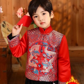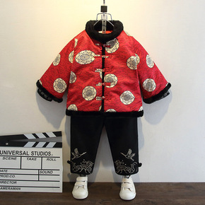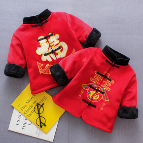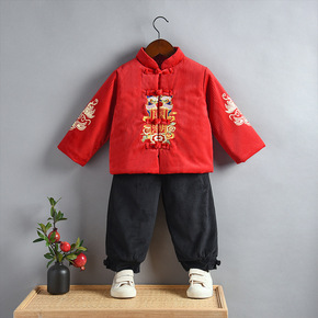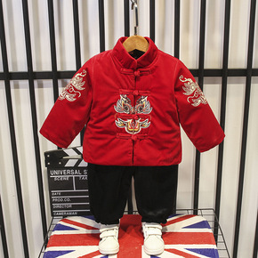 新款宝宝唐装冬男童风过年拜年服儿童周岁加厚喜庆礼服...