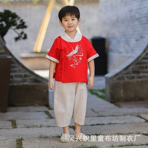 童装儿童夏装唐装两件套中小童中国风仙鹤汉服套装学生...