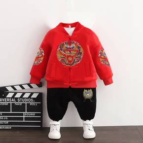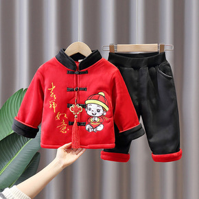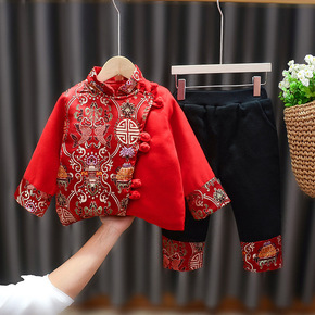 拜年服宝宝男过年套装唐装冬儿童新年装风加厚过年服男...