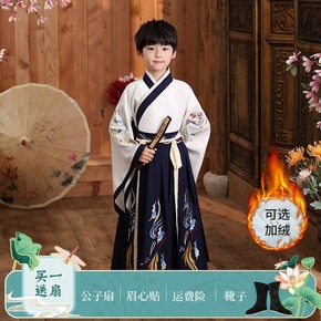 儿童汉服男童春秋复古中式唐装宝宝周岁抓周服风古装棉...