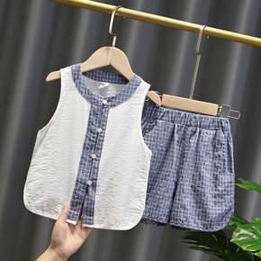 男童夏装套装儿童民族风薄款棉亚麻背心唐装宝宝夏季洋...