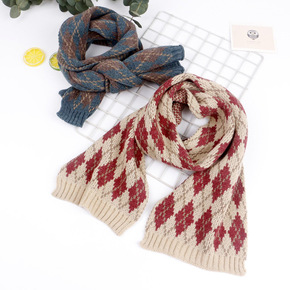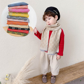 秋冬新款拼色印花儿童针织围巾男女童潮冬季保暖百搭加...