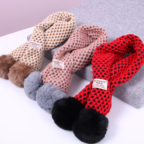 网格毛球儿童围脖本惠冬季新款宝宝围巾保暖围巾儿童款...