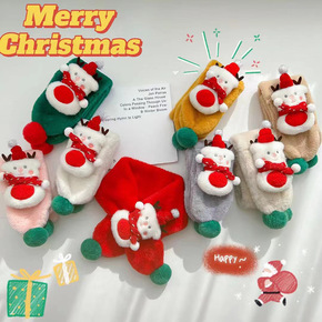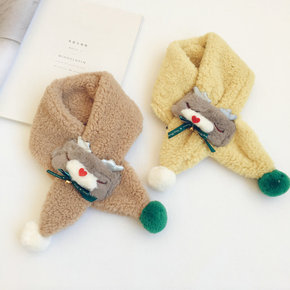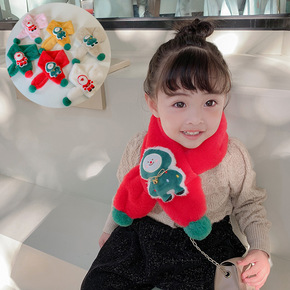 宝宝毛绒圣诞围脖女童卡通脖套冬季加厚保暖儿童围巾秋...