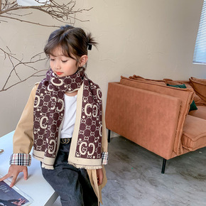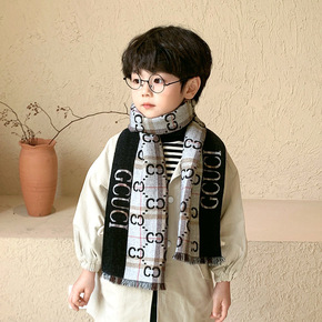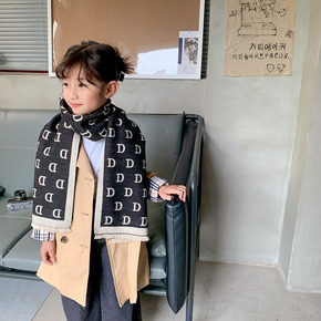 儿童围巾男女童秋冬仿羊绒字母加厚冬季宝宝围脖韩版外...