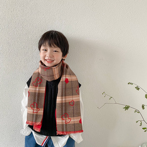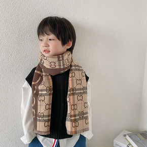 男童格子仿羊绒围脖秋冬儿童围巾冬季加厚保暖字母宝宝...