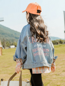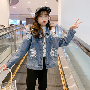 女童春装牛仔外套2022新款韩版洋气时髦中大童上衣...
