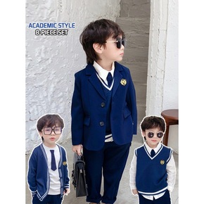 一件代发包邮男西装套装网红学院风两件套儿童男宝宝背...