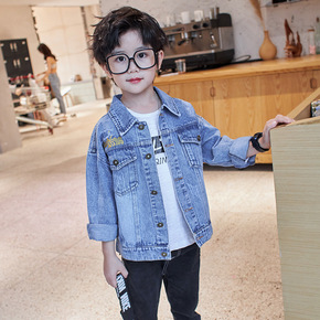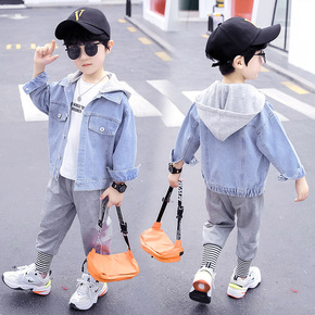 童装男童韩版时髦牛仔连帽外套新款2021中大童洋气...